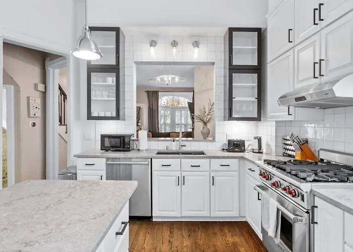Dojazd na lotnisko Midway International zajmuje 15 min, a atrakcje przyrodnicze, takie jak Promenada Chicago Riverwalk, są w 6 km. Spertus leży 4 km od willi, a Wieżowiec Wrigley Building jest w prawie 7 km. Willa znajduje się w dzielnicy Bridgeport 3 km od takich kulturalnych miejsc jak Muzeum w domu rodziny Glessnerów. Willa Spacious Luxury Retreat 8 Bed Oasis With 6 Baths oferuje dostęp do środków transportu publicznego - stacji metra Ashland w odległości 5-minutowego spaceru, oraz przystanku Archer & Lock - w odległości 5-minutowego spaceru.